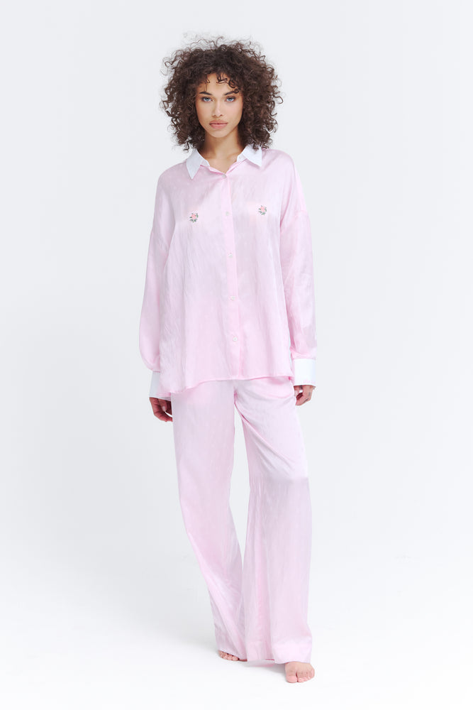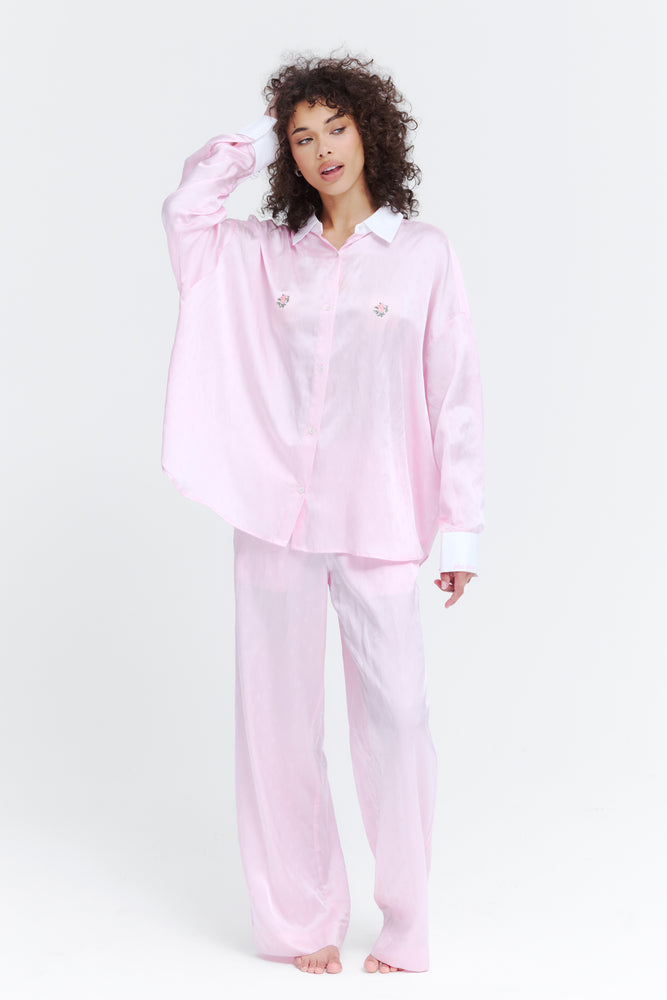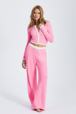 STEPHANIE WIDE LEG SWEATPANTS LT HEATHER GREY/BLUSH